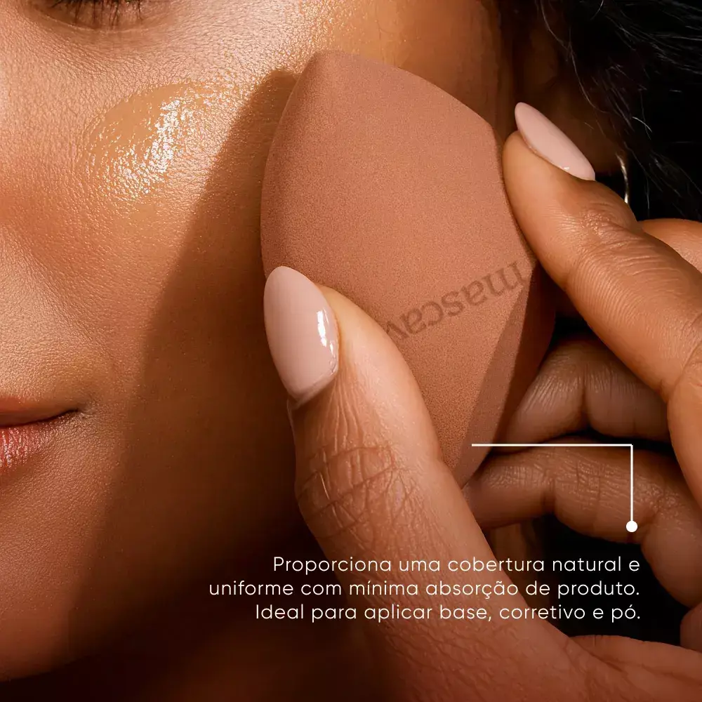 Modo de uso: Para uma cobertura suave e natural, umedeça a esponja antes de usar. Para alta cobertura, aplique o produto com a esponja seca. Aplique dando leves batidinhas. Utilize a base plana para aplicar, os lados arredondados para espalhar e, por fim, a ponta para aperfeiçoar.